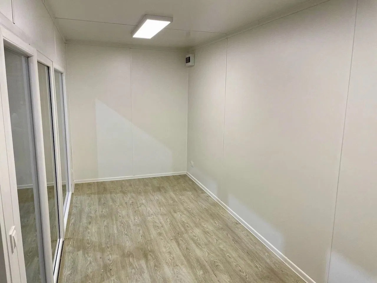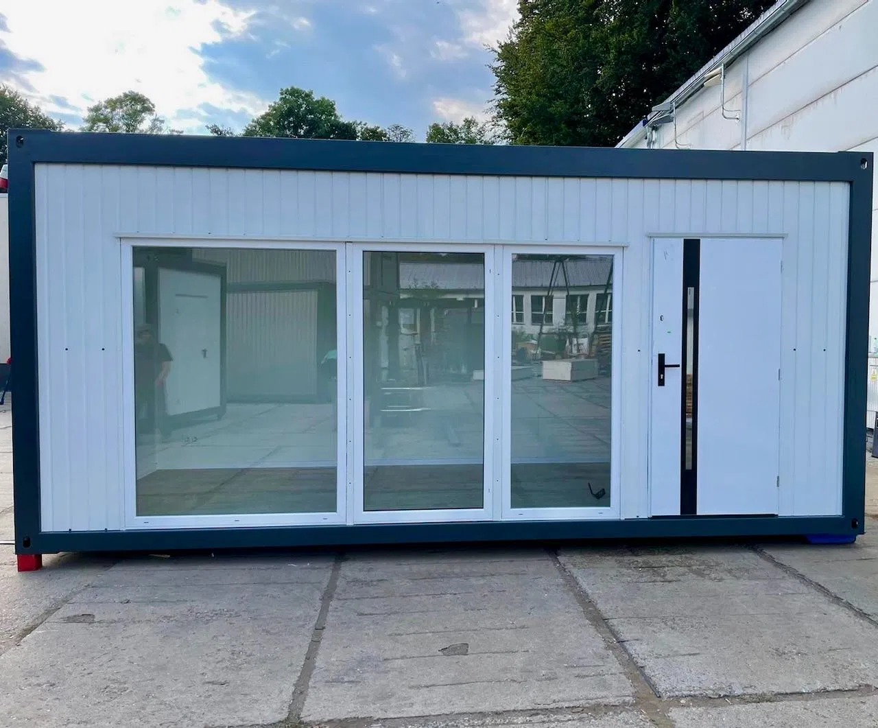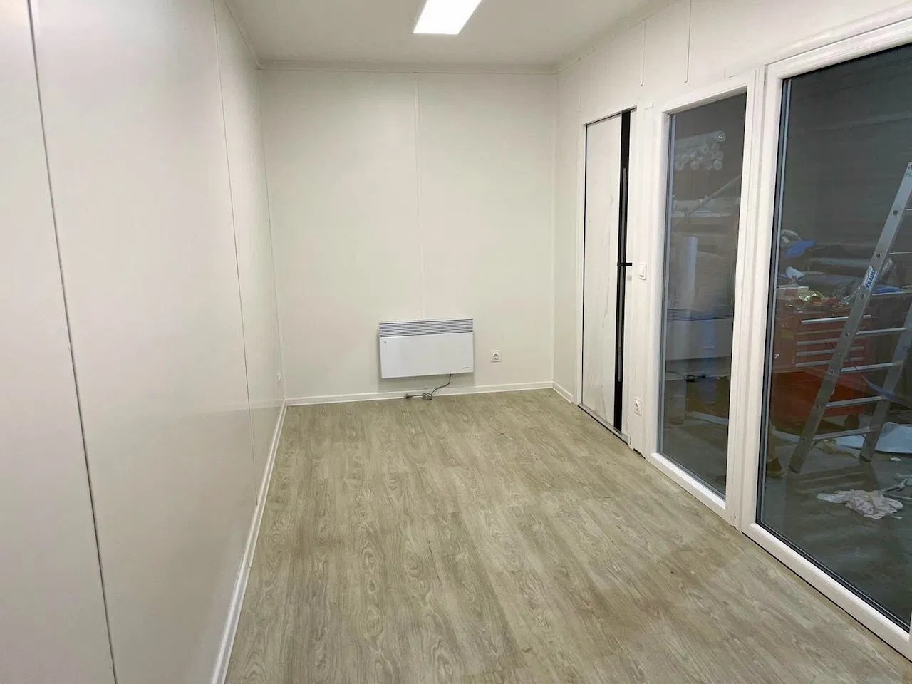 Module de 15 m² conçu pour un usage professionnel intensif : chantier, base vie, bureau d’exploitation, espace d’accueil ou point de vente. Structure acier renforcée, isolation performante (toiture et plancher en 100 mm, murs isolés), grande façade vitrée pour un maximum de lumière naturelle, finitions intérieures prêtes à l’aménagement.