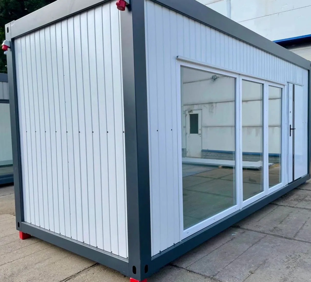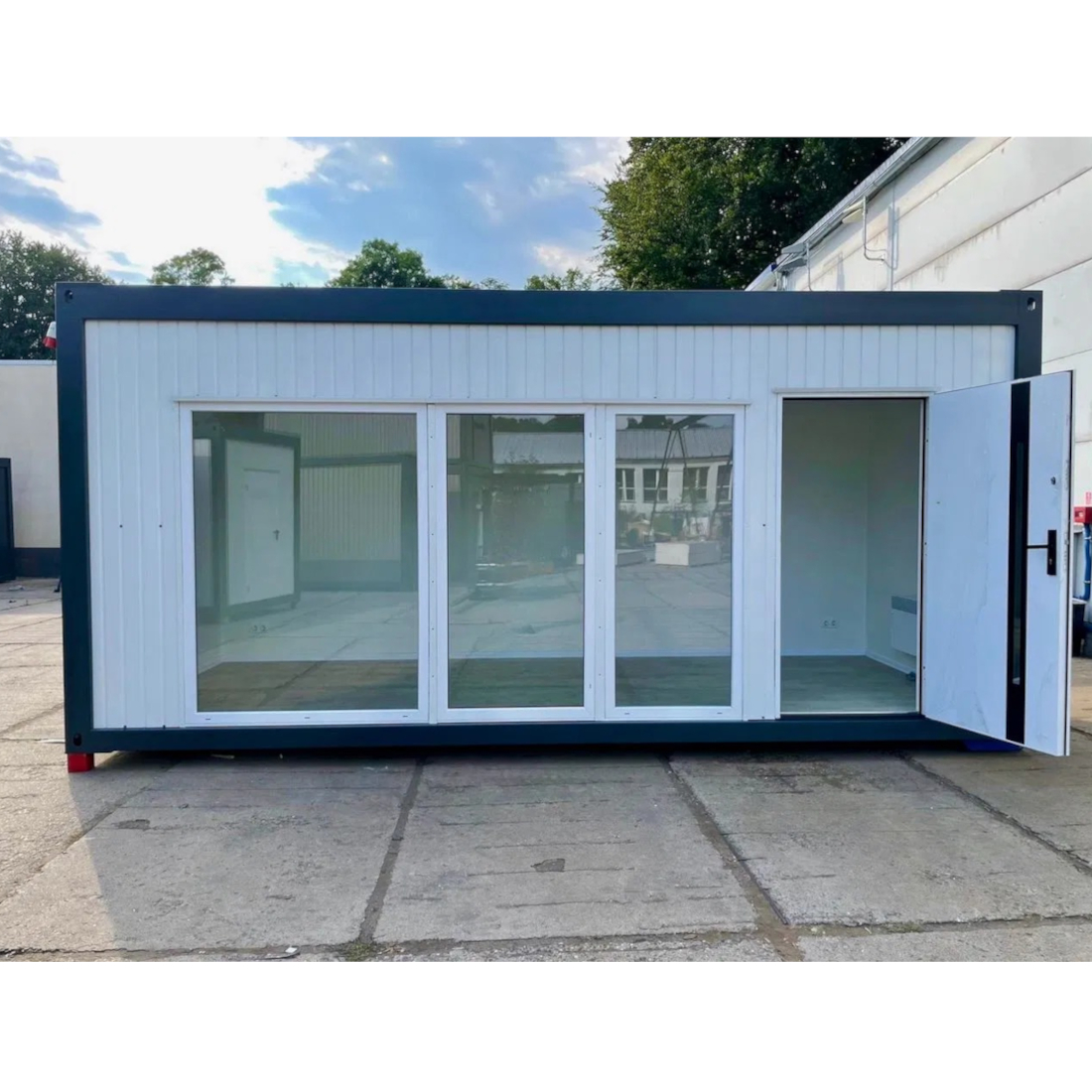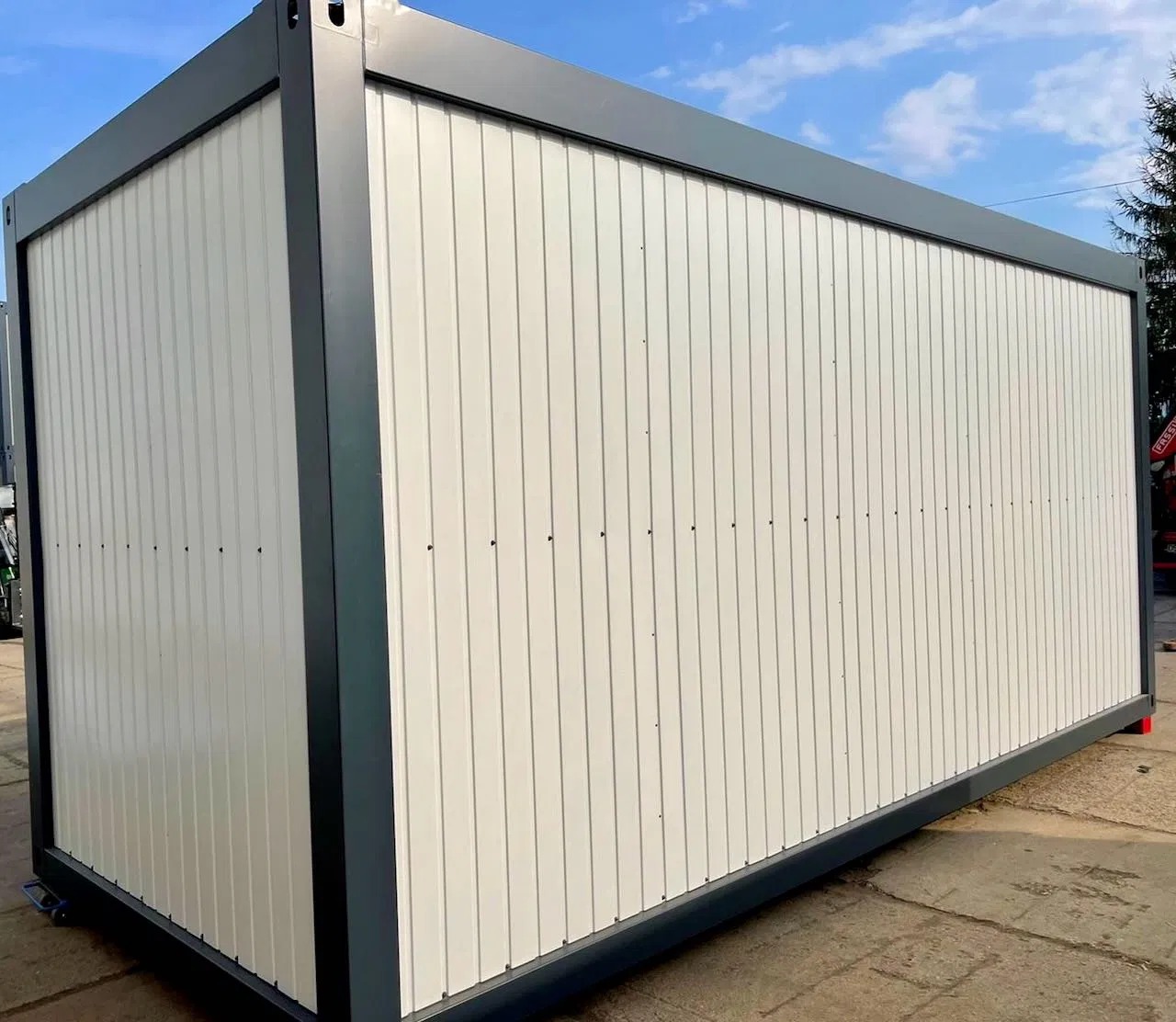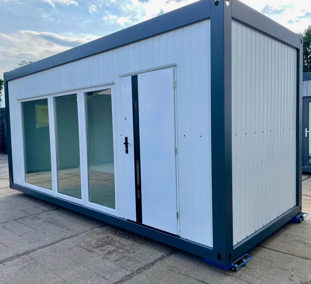 Module de 15 m² conçu pour un usage professionnel intensif : chantier, base vie, bureau d’exploitation, espace d’accueil ou point de vente. Structure acier renforcée, isolation performante (toiture et plancher en 100 mm, murs isolés), grande façade vitrée pour un maximum de lumière naturelle, finitions intérieures prêtes à l’aménagement.